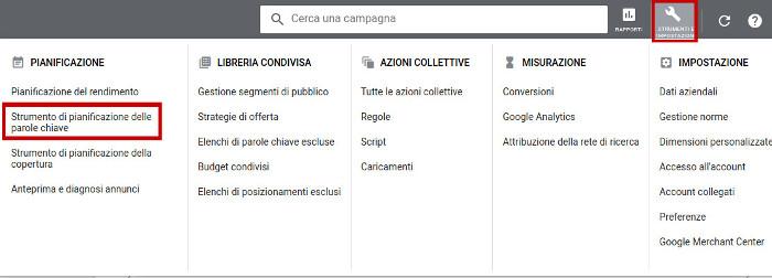 Accesso a Strumento di pianificazione delle parole chiave (Google Keyword Planner)